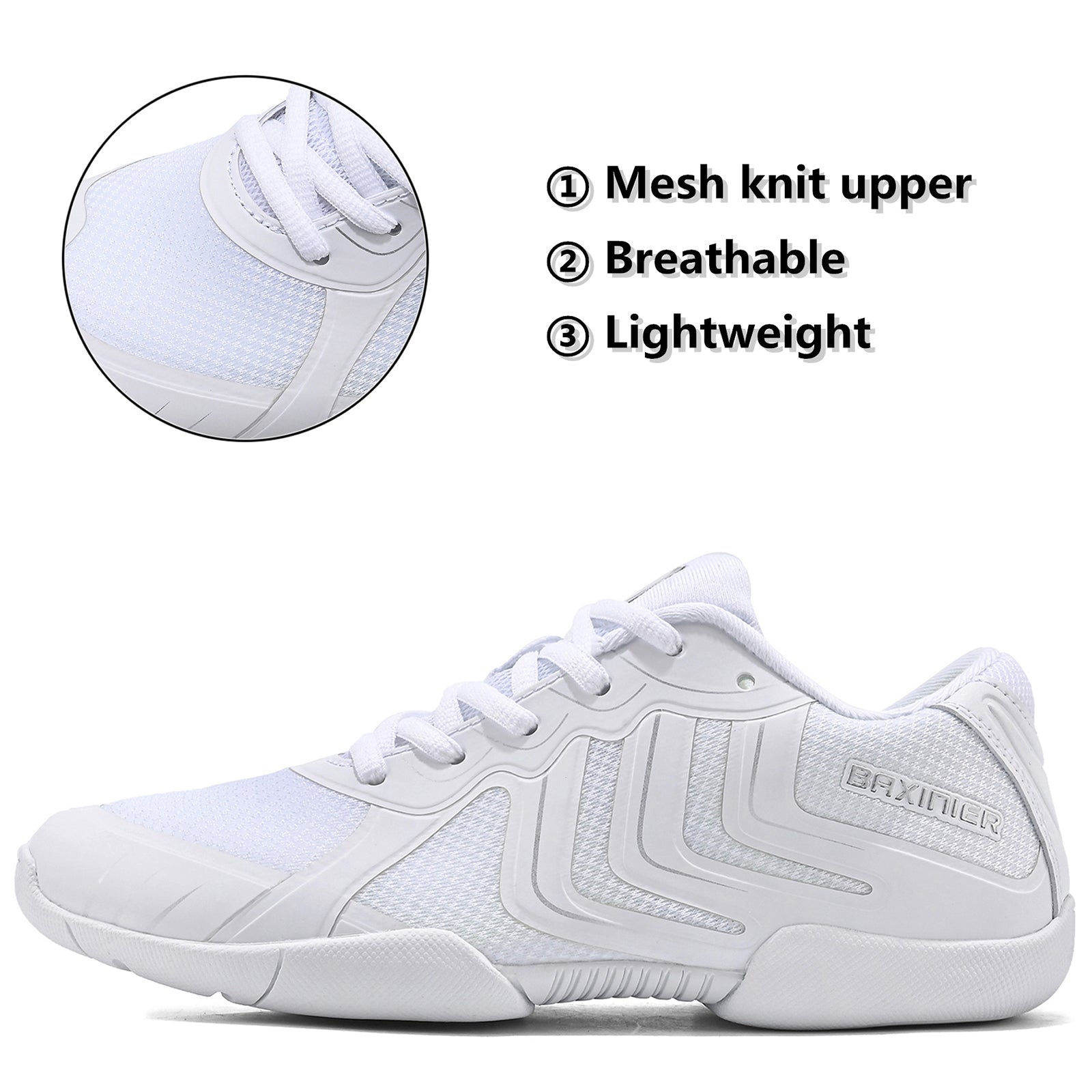The lightweight BAXINIER cheer shoes makes you easy to move quickly and confidently. Air mesh knit upper and comfy lining enhance ventilation keeping feet cool and comfy during workouts and performances.
