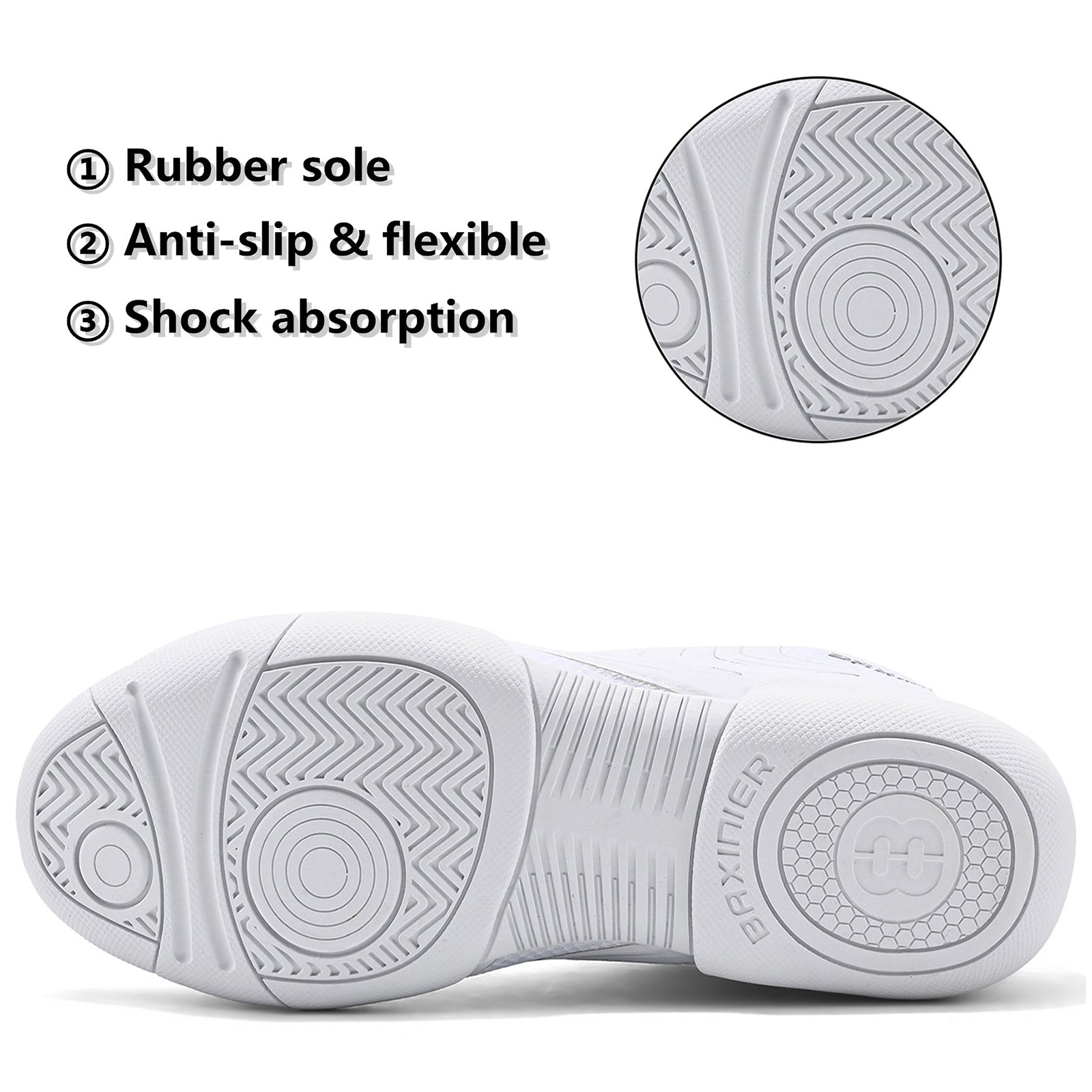 The BAXINIER cheer shoes feature a high-quality rubber outsole guarantee excellent traction on variety surfaces, while the flexible construction allows for smooth and easy transitions between moves.