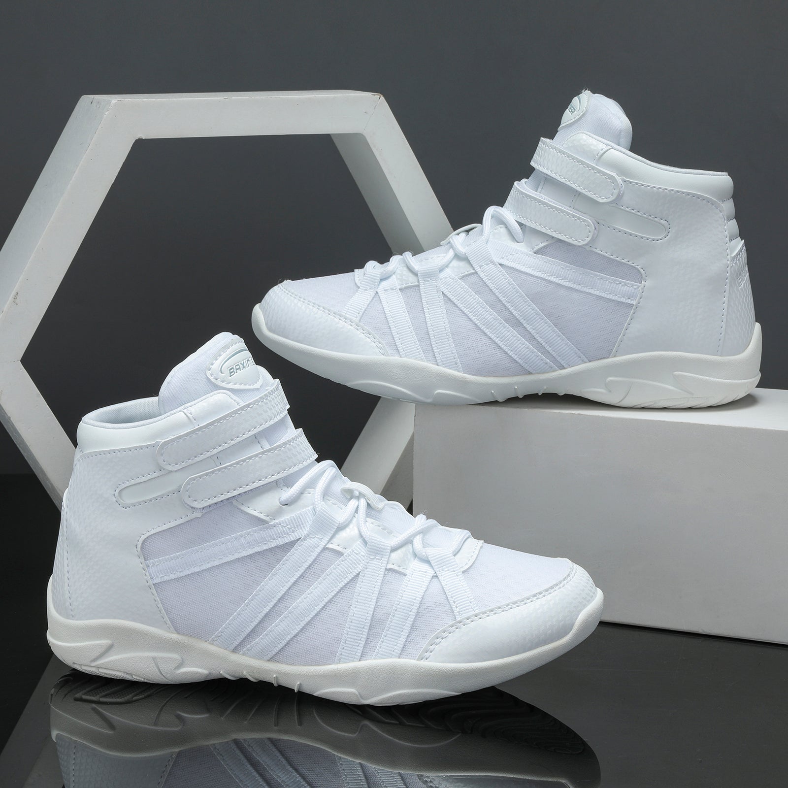 Elevate your cheerleading game with BAXINIER Professional Protection High Top cheer shoes, designed to offer lightweight support that won't slow you down. These high-performance cheer shoes are crafted with a flexible rubber outsole, ensuring comfort from the first practice to the final competition. Specially designed for cheerleaders and flyers, BAXINIER High Top cheerleading shoes are the epitome of versatility. They are perfect for indoor practices, outdoor games, and competitions, excelling in cheering, stunting, tumbling, and jumping.