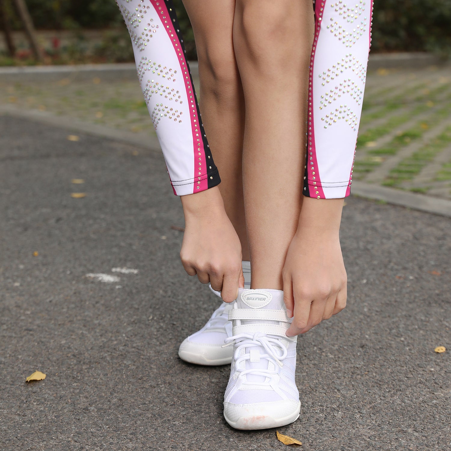 Elevate your cheerleading game with BAXINIER Professional Protection High Top cheer shoes, designed to offer lightweight support that won't slow you down. These high-performance cheer shoes are crafted with a flexible rubber outsole, ensuring comfort from the first practice to the final competition. Specially designed for cheerleaders and flyers, BAXINIER High Top cheerleading shoes are the epitome of versatility. They are perfect for indoor practices, outdoor games, and competitions, excelling in cheering, stunting, tumbling, and jumping.