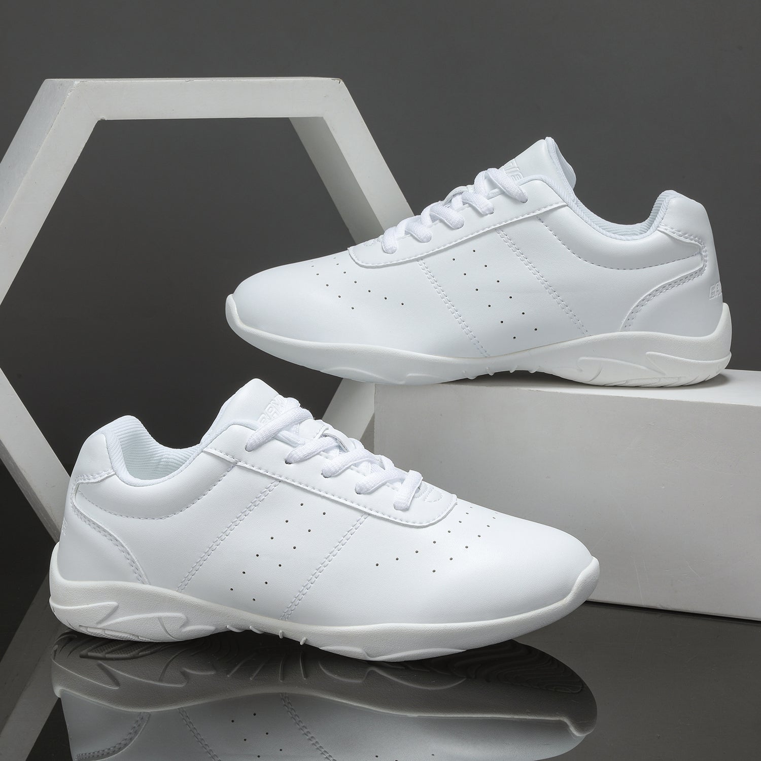 Step into the world of cheerleading with our stylish and durable synthetic leather upper cheer shoes, designed to withstand the intensity of your routines. The forward-sewn line design sets your girls apart from other cheer athletes, offering a unique and special look that's both fashionable and functional. These lightweight cheerleading shoes are the perfect choice for a variety of activities, including cheerleading, competitions, gymnastics, practice sessions, stunts, tumbling, fitness, aerobics, and more. Your cheerleaders will not only stand out but also perform at their best in these versatile and comfortable shoes.