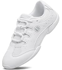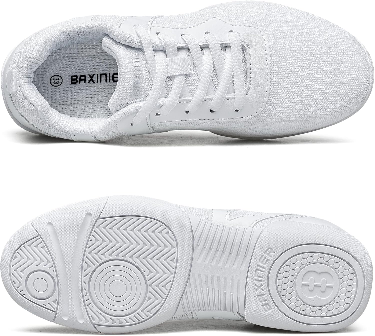 BAXINEIR Girls Cheer Shoes White Cheerleading Breathable Sneakers Kids Cheerleader Athletic Training Tennis Walking Shoes